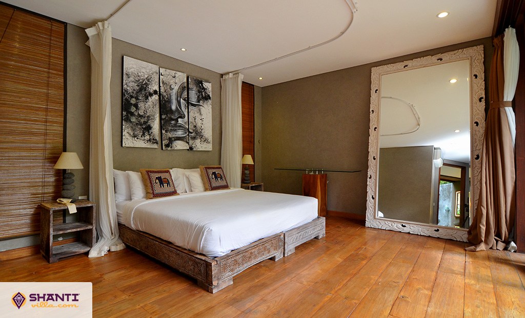 Au premier étage se trouve 3 chambres et leurs salles de bains dont 2 munies d’une terrasse qui surplombe le jardin. La chambre principale est dotée d’une salle de bain avec baignoire. Les 4 autres chambres se situent des bungalows privés dans le jardin, elles possèdent des lits simples et/ou des lits doubles king size et de salles de bain semi-ouvertes avec douche. Chaque chambre dispose de rangements, de moustiquaires et l'air conditionné.