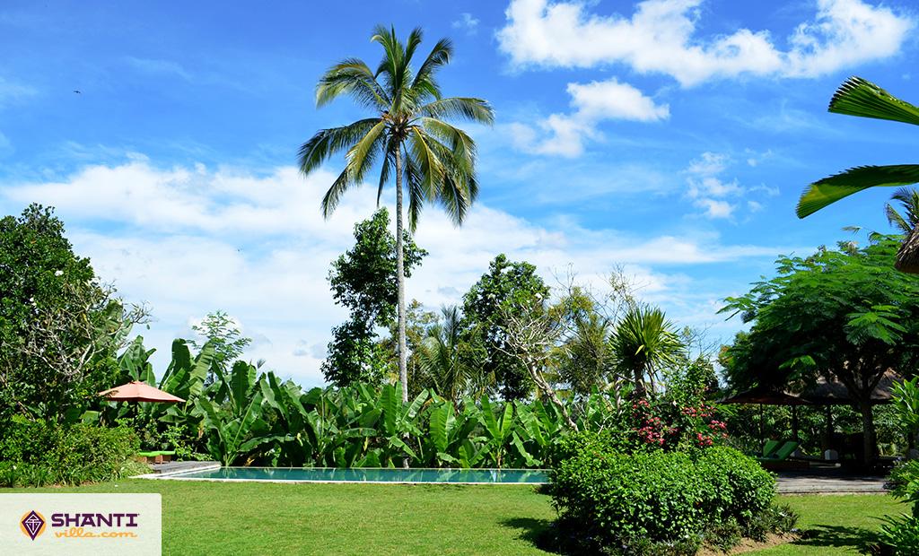 Cet hébergement avec piscine comprend un immense jardin et 3 pavillons répartis sur toute la propriété. L’architecture et l’ameublement sont un mélange entre traditions balinaises et modernité pour un confort haut de gamme entouré d’un jardin verdoyant. Une grande piscine offre un espace idéal pour se rafraîchir en famille ou entre amis tout en prenant un bain de soleil sur les chaises longues qui la bordent.